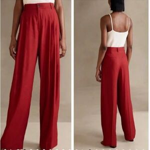 Banana Republic Cherry Red Lena Wide-leg Linen-blend Pant Trousers