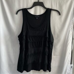 Banana Republic Chic Black Ruffled Tank Top XL Fringe Layered Festival Party