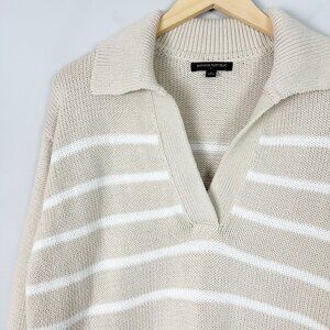 Banana Republic Chunky Fisherman Polo Sweater Striped Size Medium Women's