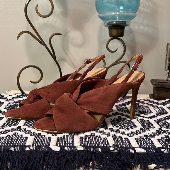Elegant cinnamon heels with a stylish twist design. Perfect for any occasion.