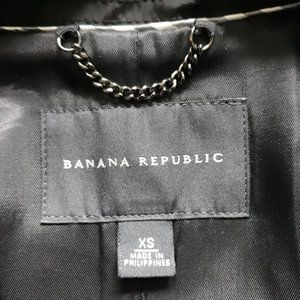 Banana Republic Women's XS Clara Short Trench Jacket Black Collared Button Down