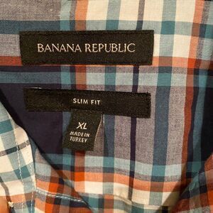 Banana Republic Classic Navy Casual Plaid Button Down XL