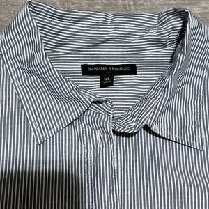 Banana Republic Classic Striped Cotton Button Up Shirt Womens XL Blue Career