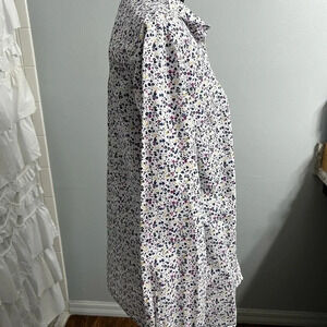 Banana Republic classic fit top, size XL. White background with blue, purple and yellow flowers. In excellent condition, no rips tears or stains. 100% cotton