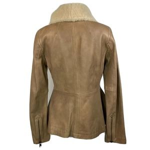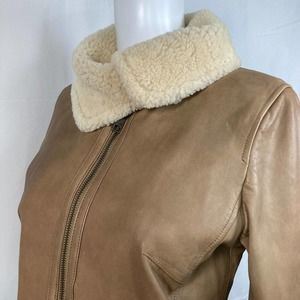 Banana Republic Coat Jacket Womens Sz XS Tan Lamb Leather Shearling Zip Pockets