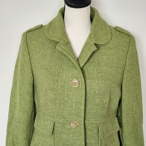 Banana Republic Coat Jacket Wool Tweed Military Style Peacoat Y2K Green S