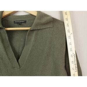 Crafted for comfort and style, this Banana Republic collared pullover sweater is a versatile addition to any wardrobe. The olive green hue is both earthy and sophisticated, complementing a variety of outfits. Ideal for transitional weather, the blend of acrylic, nylon, and polyester ensures durability and ease of care. With a size medium fit that's true to regular sizing, the sweater features a classic collared neckline that adds a touch of elegance to your casual or professional ensembles. The pullover design makes it effortless to wear, offering both convenience and timeless fashion.