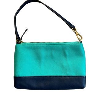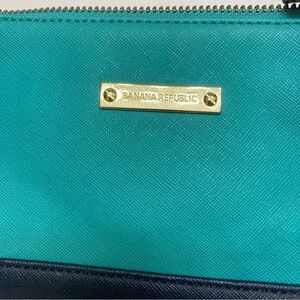 Banana Republic Colorblock Wristlet Aqua/Navy Golden Hardware Faux Leather 5”