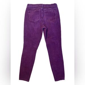 Add a vibrant pop of color to your fall and winter wardrobe with these Banana Republic skinny corduroy ankle pants in size 6 (also fits 28). Featuring a classic toothpick silhouette—fitted through the hip and thigh with a slim ankle—these pants offer a flattering and versatile style. The rich purple beet root hue is perfect for seasonal layering, while belt loops, five-pocket style, and a button-zip closure ensure a polished finish.