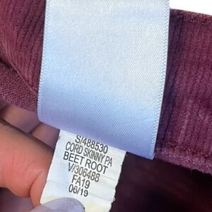 Banana Republic Corduroy Pants Women 6 Purple Beet Root Slim Preppy Chic