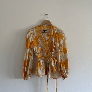Banana Republic Cotton Butterfly Print Balloon Sleeve Wrap Top Size XS