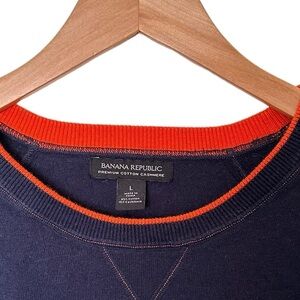 Banana Republic Cotton Cashmere Blend Ragland Crewneck Sweater Navy Blue with Orange Stitching