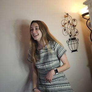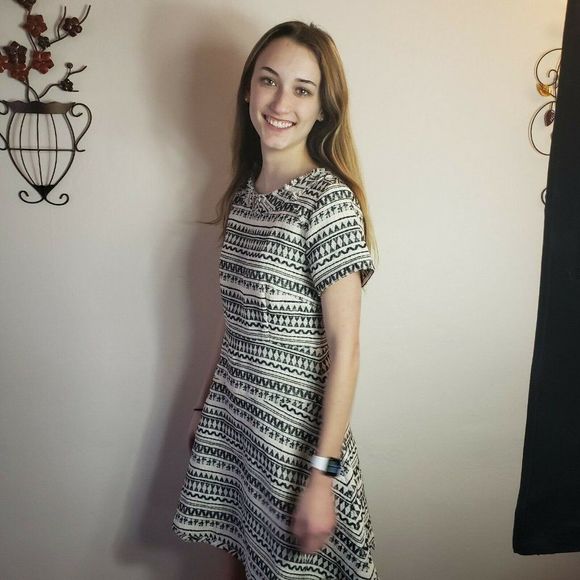 Banana Republic Cotton Poly Off White Geometric A-line Dress Size 10.