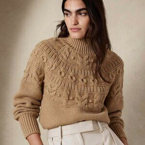 Cozy and stylish, this Banana Republic Couronne cable knit sweater offers warmth and timeless fashion. Perfect for chilly days, its fisherman-inspired design adds a touch of classic elegance to your wardrobe. Ideal for layering or wearing solo.
