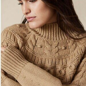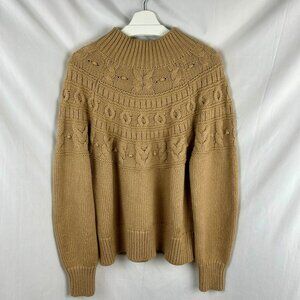Banana Republic Couronne Cable Knit Sweater Women Large Tan Beige Fisherman