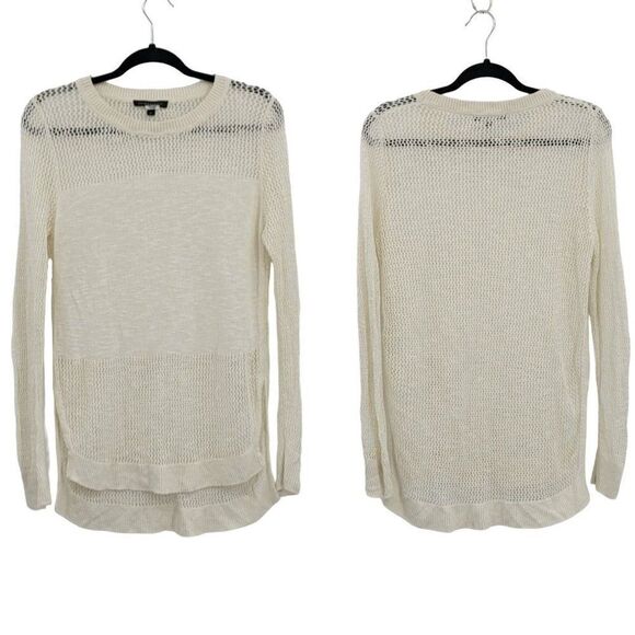 Banana Republic Coverup Top M White Open See Through Knit Side Slit Tunic Beach