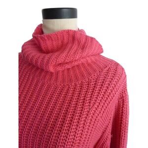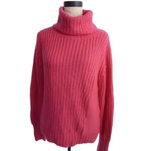 Banana Republic Cowl Neck Cable Knit Pink Sweater Chunky Large