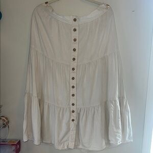 Banana Republic Cream 3-Tiered Button-Down Cream Linen Like Fabric Skirt
