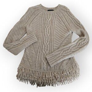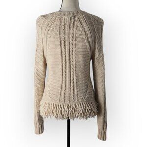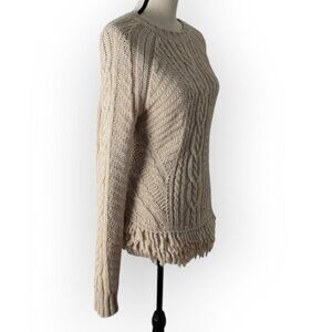 Banana Republic Cream Cable Knit Fringe Hem Chunky Sweater M