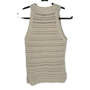 Banana Republic Cream Eyelet Sleeveless Knit Halter Top Casual Stretch Comfort M