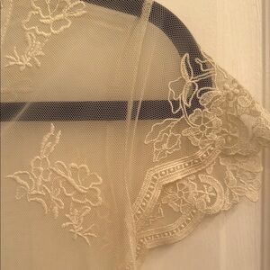 This Banana Republic blouse in a soft cream color features elegant embellishments and a buttoned front, offering a sophisticated touch to any outfit. The intricate floral lace detailing adds a timeless charm, making it ideal for both casual and formal settings. Never worn! Make an offer! 🤗