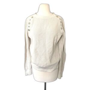 Banana Republic Cream Long Sleeve Knit Pullover Rhinestone Crewneck Sweater Sz L