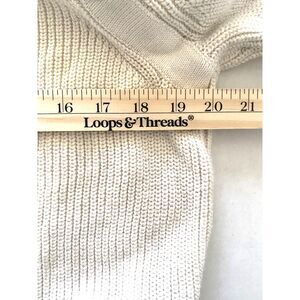 This Banana Republic cream long sleeve knit pullover sweater is a cozy and chic winter staple. Made from 96% cotton and 4% other fibers, it’s stretchy and comfortable with rhinestone decoration adding a touch of sparkle. Please note, there is a light stain (see pic), but the sweater remains warm, stylish, and perfect for layering during colder months.