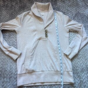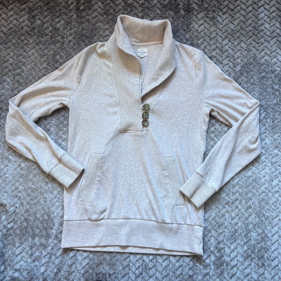 Gently used Banana Republic pullover sweater. Cream colored with shawl collar. Size Small