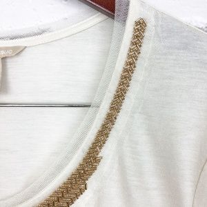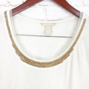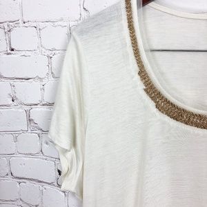 Banana Republic | Cream Tee with Gold Beaded Neckline | Size Extra Large
