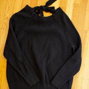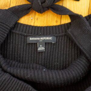 Black crewneck sweater from Banana Republic. Fits like a true medium and a tighter large. Super cute tie detail in the back. In great condition, just needs a bit of lint rolling.