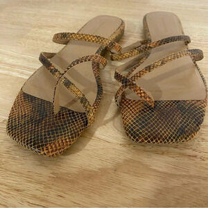 Banana Republic Croc Snake Leather Strappy Flat Sandals Brown 7