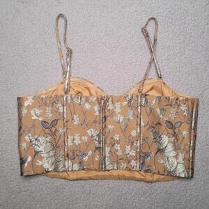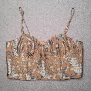 Banana Republic Crop Top 12 Gold Green Floral Jacquard Cora Brocade Bustier Cami