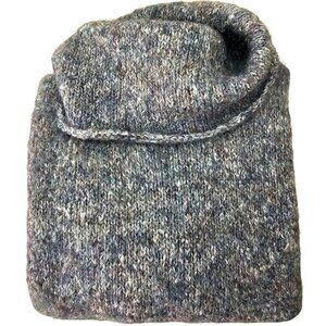 ** Near new condition reflecting very little sign of previous wear. Soft, fuzzy, and cozy. The sweater threads are blueish and greenish -- pale teal.