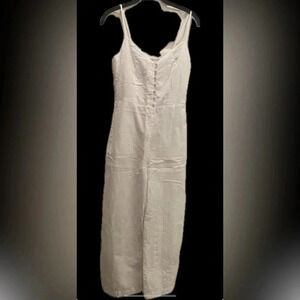 Banana Republic Cropped Linen Cotton White Wide Leg Jumpsuit Good Condition Sz 0