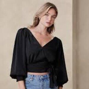 Banana Republic Black Cropped Wrap Blouse Size 2 NWT
