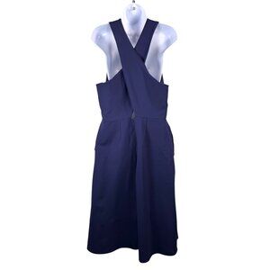 Banana Republic Cross back Ponte Midi Dress modest navy with pockets sz 14