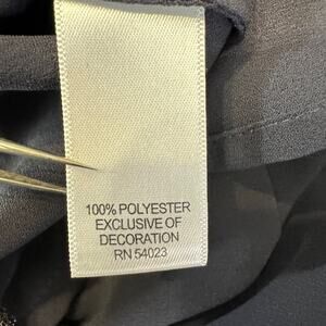 Gently Pre-owned. Machine Wash. This tunic top reflects a modern preppy aesthetic with subtle hints of elegance and edge. The deep navy hue anchors the look in classic sophistication, while the V-neck cut-out detail adds a contemporary, slightly daring twist. The perforated fabric lends lightness and texture, enhancing the blouse’s breezy, breathable quality—ideal for seasonal transitions or layering.