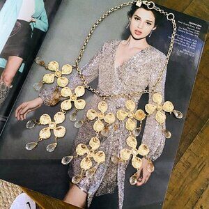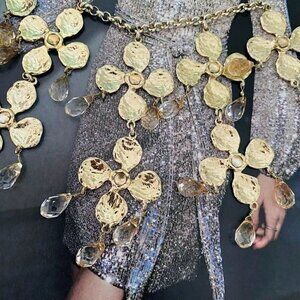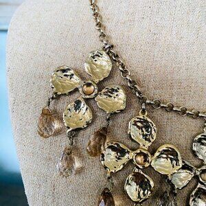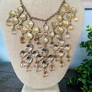 Gorgeous multi row goldtone, floral and faceted crystal necklace. This necklace with make a statement at any event!