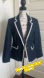 Sophisticated dark blue blazer with stylish white accents. Ideal for work or casual outings.