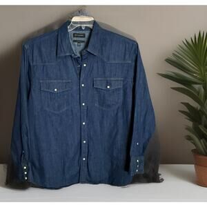 Banana Republic Dark Denim Western Pearl Snap Button Up Men’s Shirt, XXL, EUC