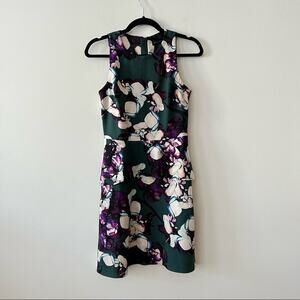 Banana Republic Dark Green Floral Print Peplum Sleeveless Dress