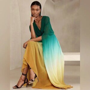 Banana Republic Daybreak Ombre Blue Zela Chiffon Maxi Dress, Size