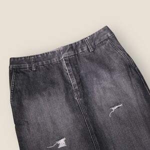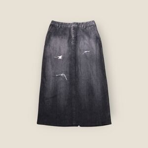 Banana Republic Denim Midi Skirt Women's Size 2 in Rinse Black Wash Distressed