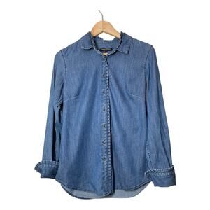 Banana Republic Denim Rilely Shirt Womens Size 6 Pleated Button Western Capsule