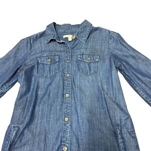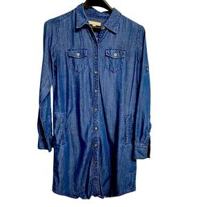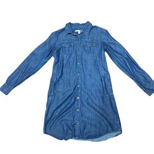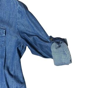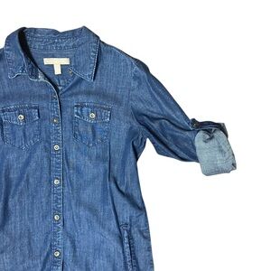 Banana Republic Denim Shirt Dress Size 0 Blue Chambray Roll Tab Sleeve Oversized