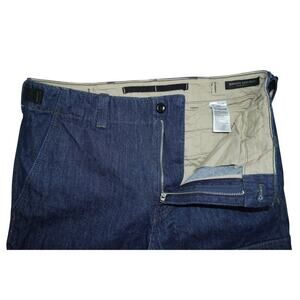 Step up your utilitarian style with these Banana Republic Tapered Fit Cargo Pants in a durable denim construction. These dark wash pants feature a relaxed cut with side cargo pockets, flap back pockets, and adjustable waist tabs for a custom fit. Perfect for workwear-inspired streetwear or functional everyday looks. Drawstring hems add a rugged touch.