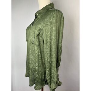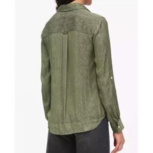 This Banana Republic Utility Shirt is a beautiful olive green color with a subtle darker green snake skin style pattern.