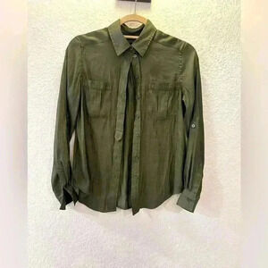 Banana Republic Dillon Olive Button Down Shirt XXS Classic Fit Workwear Chic