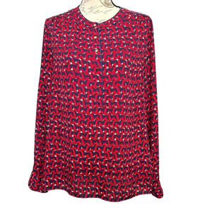 Banana Republic Dog Print Popover Blouse Size Medium Roll Tab Sleeve
