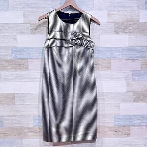Banana Republic Double Bow Tafetta Shift Dress Navy White Stripe Womens 0